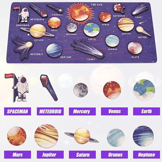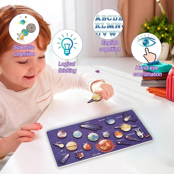 Introduce young learners to the cosmos with this engaging wooden solar system puzzle. Crafted from premium wood with a smooth, burr-free surface, it's built to withstand enthusiastic play. The vibrant planet designs spark curiosity about space exploration while developing essential skills—color recognition, hand-eye coordination, and problem-solving abilities. Each piece fits together smoothly, encouraging independent learning and creative thinking. Perfect as a classroom teaching tool or a thoughtful gift, this puzzle combines educational value with imaginative play, making it an ideal choice for early childhood development.